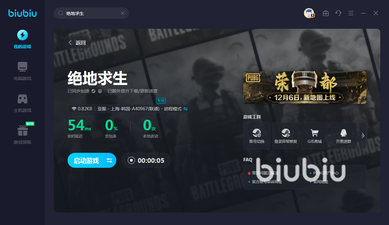看到这里大家应该就清楚绝地求生游戏崩溃怎么办了吧,biubiu可以利用自身的优异性能解决闪退卡顿甚至崩溃这样的问题。虽然不改变游戏的内核,但是可以从网络方面着手,帮助大家获得更稳定的游戏环境,非常适合喜欢这款吃鸡游戏的玩家选择。