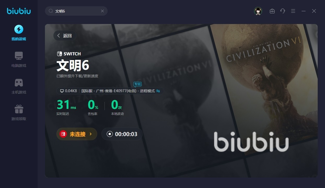 2024年02月27日 15:58 来源:雷电上大甲对于这款游戏,大家应该都不会陌生,玩家能够在里面去建立起伟大的文明时代,同时也可在这片土地上去生活,通过自己的努力来低于外来敌对势力的入侵,对于文明6游戏崩溃怎么办这个问题一直都有很多玩家不清楚,其实在游戏的体验过程中,大家要是网络卡顿情况很严重,甚至还经常发生延迟的话,小编觉得去使用biubiu就很关键了,作为专线加速工具,它能为大家轻松带来稳定的加速效果。