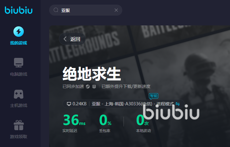 都设置好了就可以开始享受优质的加速服务了,biubiu可以快速的优化网络,并且将帧率提高,延时也有效的降低,这样大大减少了玩家出现卡顿的情况,掉线问题也解决了。这样玩家可以安心的进行操作,发挥自己最大的水平跟队友打配合。