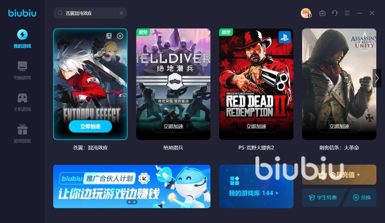 游戏对电脑配置的要求并不高,大部分设备都能畅玩,要是遇上了闪退的情况,一般来说可能是网络质量不好,想要解决的话,biubiu加速器是一个不错的选择,其中实用的加速服务,不仅高效而且操作简单,很适合这方面的小白去使用。