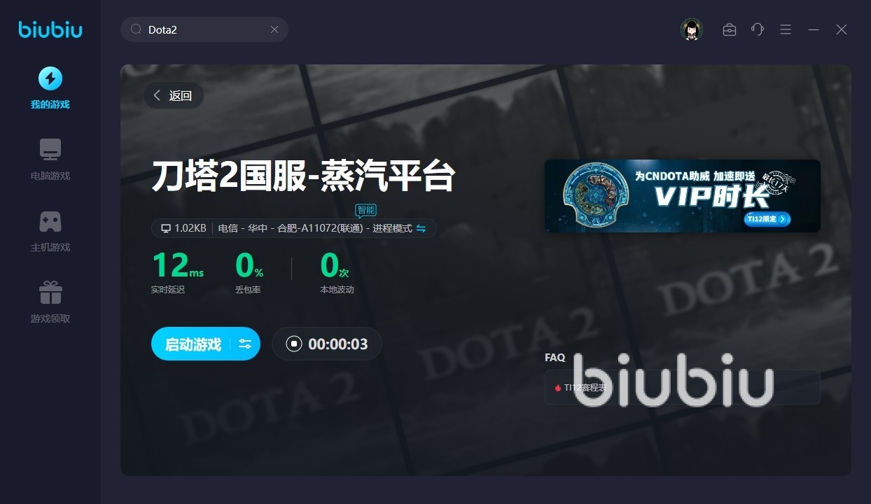 此外biubiu所支持的游戏类型很是全面,覆盖了大量的主机以及PC游戏作品,此外该工具的加速步骤也是非常的简单,玩家在首页搜素找到DOTA2后,直接去选择对应的作品去点击便可开启提速效果了,当然游戏结束以后也可一键停止加速,这点即使是新人玩家也能轻松获得不错的体验。