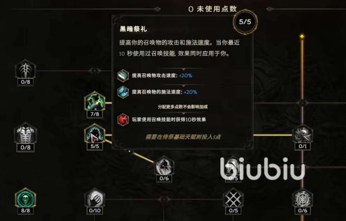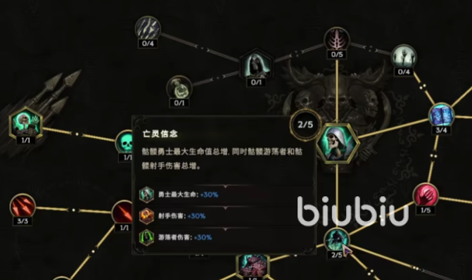 最主要的骷髅法师能点多高就多高,这是最有效的输出方式,持续而稳定。恶灵就是第二重要的,虽然伤害差点,但是通过叠加神像持续刷新召唤幽灵,爆伤点满之后配合它自身的攻击效果,威力很大。有富余的点数话,还可以点在自爆僵尸上面,补足额外的伤害,并且它还是小范围爆炸伤害。