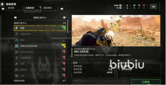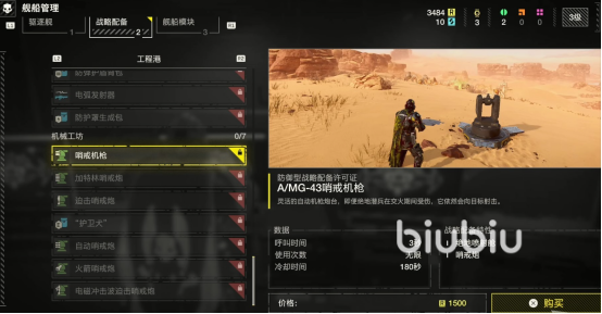 首先在游戏中想要对角色的战备进行购买,我们必须要进入到舰船管理页面,找到战略配备栏。在这里可以看到游戏中大部分的武器以及对应数据,甚至是武器所展现出的效果都可以明确的显示。
