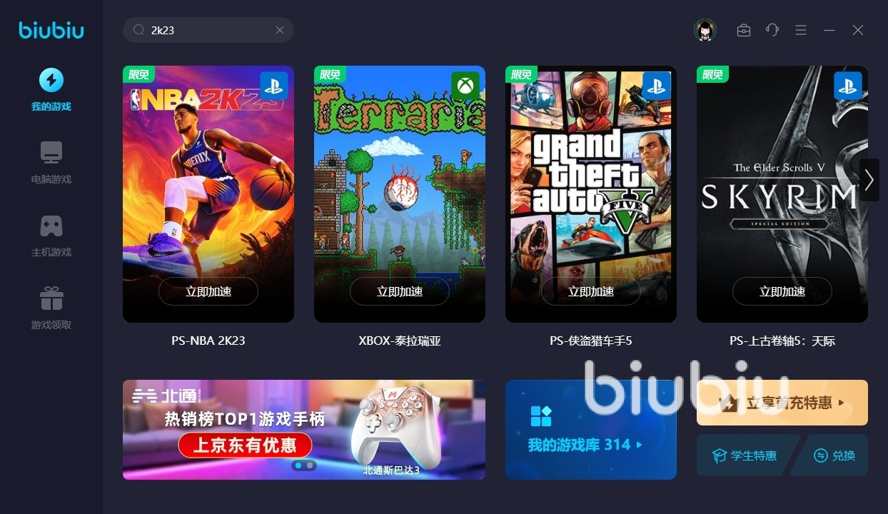 这是款支持多人在线匹配竞技的游戏,对于玩家的网络稳定性自然也是有着极高的要求,如果时常出现掉线或者是卡顿的话肯定是不行的,所以这里建议各位可通过biubiu来运行它,这款工具涵盖的游戏作品很是丰富,市面上绝大部分的热门作品大家都能见到,比较难得的是针对部分主机和PC作品更是开启了限时免费加速的服务。