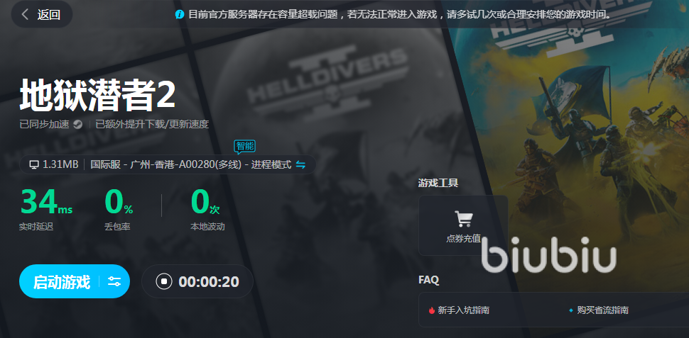 这就需要biubiu来优化网络了,开启效果提升之后得到又快又稳的网络状态,匹配速度就会快上不少。这样一来进入游戏还能够有低延时的操作环境,打怪也会迅速很多,轻松通关的话拿到奖励就简单多了。