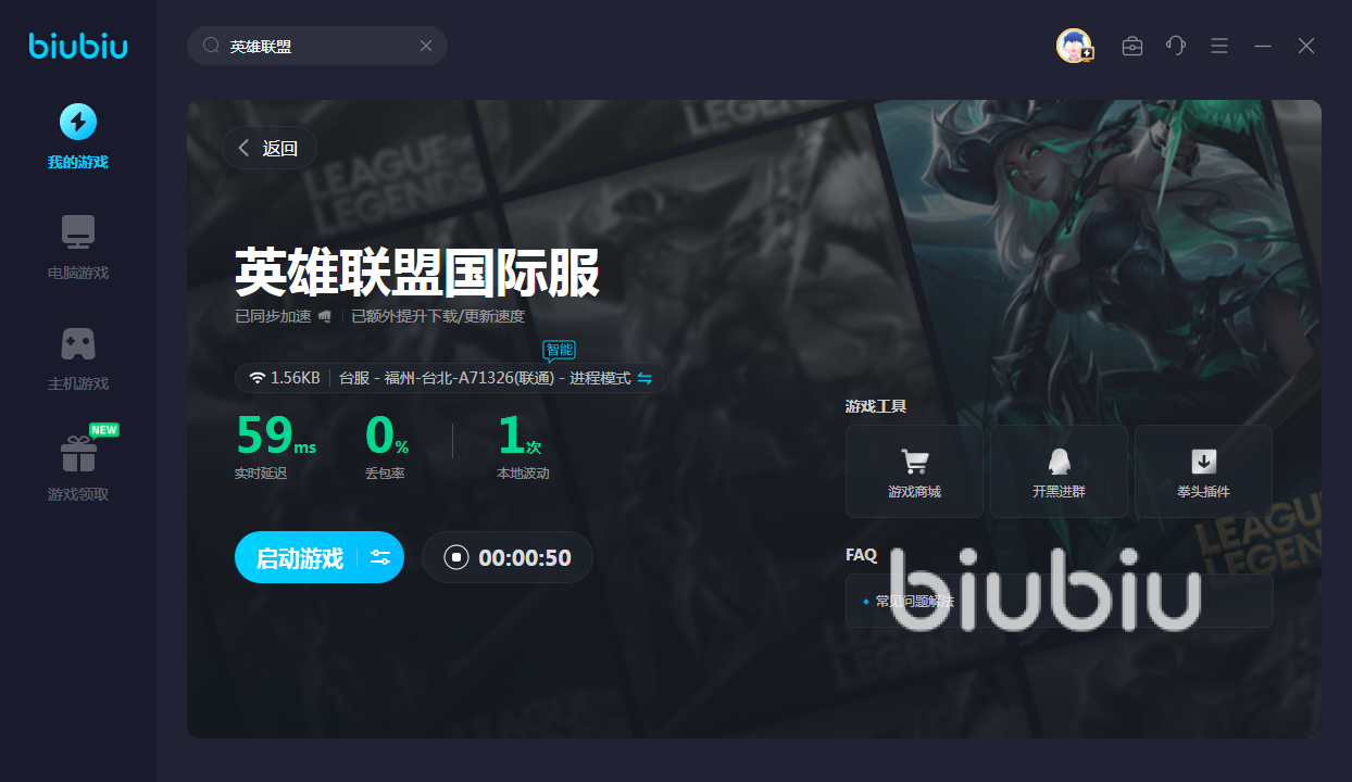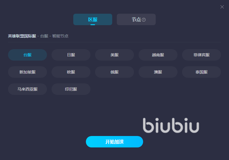 使用biubiu软件进行优化之后,会对网络进行全方位的改善,大家在游戏中进行连接的时候,也很容易因为堵塞缘故而出现连接失败,这时就可以在优化后顺利连接上,帮助提高载入速度。Biubiu在运行过程中会始终对网络进行监控,一旦出现波动情况,就会自动切换为更合适节点,利用这样的技术就能够保证玩家在低延迟下运行游戏,自然也就避免了出现卡顿闪退这样的问题。另外英雄联盟这款游戏也有很多海外服务器,值得大家去选择,在biubiu中可以直接连接自己想要去的其他海外服,实现快速连接与切换,利用全球专线技术,在海外服能保证一个良好网络环境,所起到的效果和加速国服是一样的。