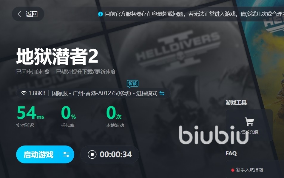 这款加速器的使用方法非常简单,搜索游戏、选好服区启动即可只有2个步骤,还没下载的小伙伴只需要通过上方的链接下载即可,启动速度也很快,点击对应按键即可完成加速,过程只需要几秒钟。同时biubiu加速器包含的游戏数量非常多,就算是冷门游戏也有很多都收录在内,更何况是绝地潜兵2这样的爆款新游。启动之后游戏操作更加流畅,角色的动作看上去也更加连贯,大幅提升游戏体验感。
