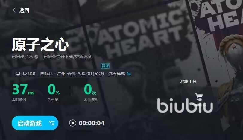 原子之心由国外厂商制作发行,虽然是一款单机游戏,但是进入游戏时需要联网登陆验证。而国内的玩家往往因为网络连接的问题导致自己进不去游戏,这时加速器的重要程度就体现出来了。好用的加速器小编只推荐biubiu,其支持原子之心的一键加速,可以在短时间帮大家连接上更快的线路,保证体验畅通。