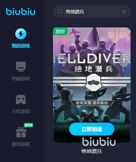 上述就是绝地潜兵掉线怎么办的内容分享,玩家们对这个游戏中的队伍模式比较热衷,队伍模式一般也会开启语音通话。在这样多进程的模式下,玩家的电脑就非常需要biubiu加速器这样的软件来为游戏进行专门的网速提升和网络环境优化了。而且这款加速器上有超长的免费加速时间,足够玩家们在游戏联机状态下启动加速器。