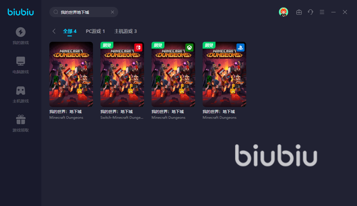 我的世界存在很多系列,很少有玩家能单次全部体验齐全,但只要是需要的话biubiu就能提供服务,要是想精准搜索某个版本的话可以输入全称,要是想范围搜索的话输入前缀【我的世界】即可,从中就能看到当前我的世界下面有几个拓展版本系列,从中选择一个你想要新体验的版本就可以了。