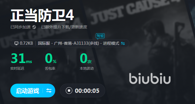 biubiu拥有超强的游戏资源,软件获得正版授权。游戏涉及多个平台,就拿正当防卫4来说,biubiu收录的有端游版、PS版和XBOX版,服务器的覆盖也很广,大家经常玩的区服都能加速。遇到缺少游戏和区服的情况大家也能主动反馈,平台积极将更多游戏带到用户面前。