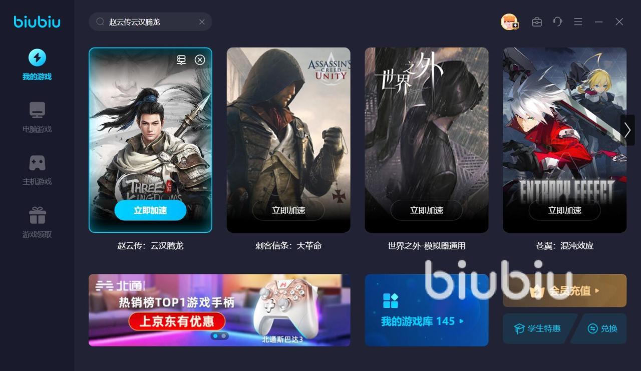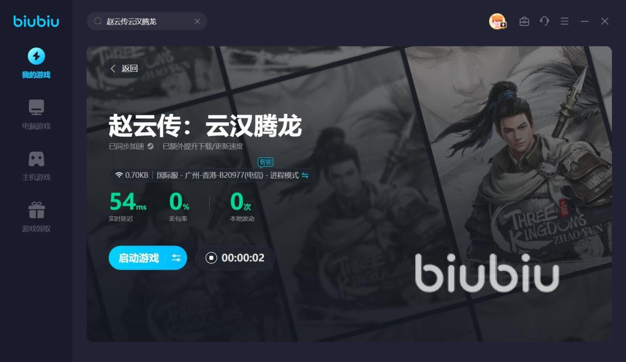 以上就是如何解决赵云传云汉腾龙卡顿,赵子龙是历史上十分有名的武将,要是你对这个人物感兴趣,想体验他辉煌的一生,那么这个作品很值得一试,期间用biubiu加速器优化一下,可以让你拥有更丝滑的游戏体验。