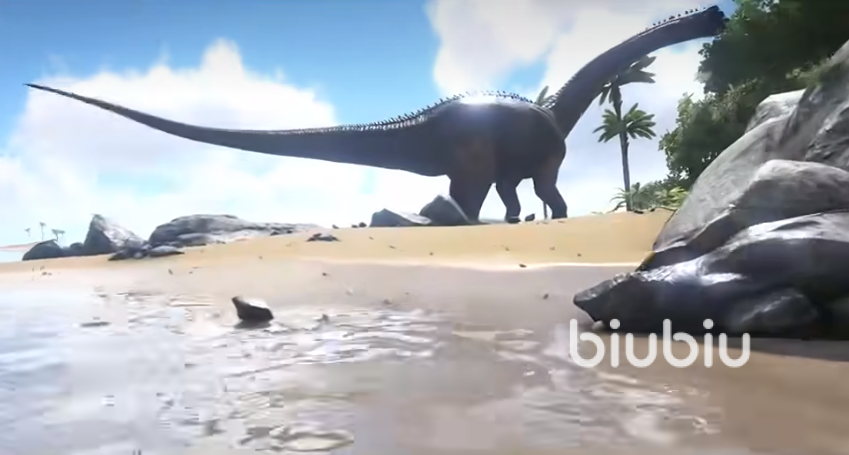 本作全名方舟生存进化,这就意味着主角是有线性的成长方式的,而且上文说到的宝宝可不是普通宠物,而是大恐龙。这个玩家生活的岛上,有食草以及食肉两种类别的恐龙,前者比较好对付,后者需要准备足够多的紫果子迷晕它才好收服。