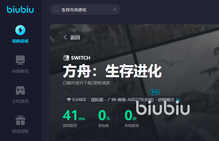 不管是用过biubiu还是没用过的小伙伴,听到立马就行动起来了,领取之后就能够开启游戏旅途了。操作方式也简单,先在客户端的搜索栏输入游戏名称进行查找,就能看见不同版本的游玩方式,主机或者PC玩法任君选择,biubiu都能提供加速器服务。