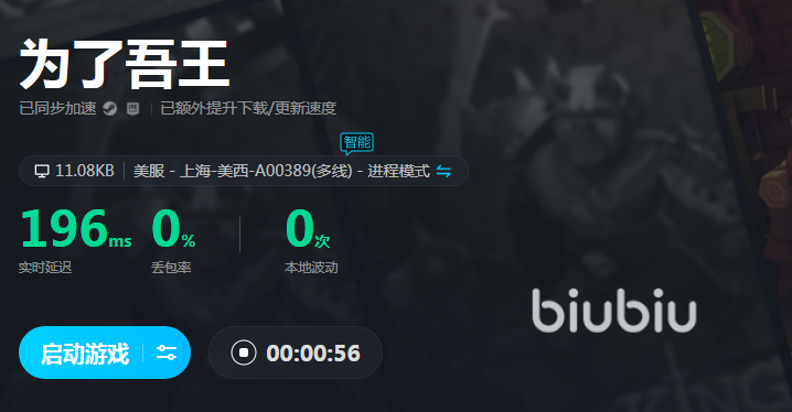 大家可以选择biubiu加速器来玩为了吾王,它拥有专业的游戏线路,改善原本卡顿的家庭网络,想要局域联机或者是玩海外服游戏都很轻松,加速又快又好,还支持多平台同步加速,专业又正规。