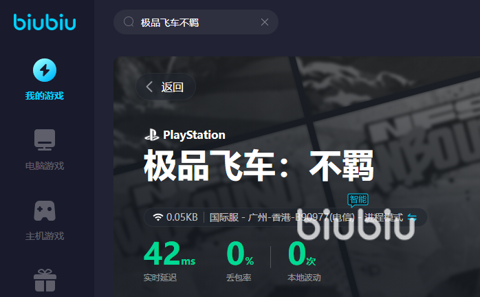 输入游戏名称查找加速功能详情页,就可以看到游戏图标跳到眼前了,不仅是有PC端可以选择,主机端也是可以的。但是主机端需要进行网络设置,不会也没有关系,biubiu是提供详细的图文教程的,跟着来也不用花费多少时间。