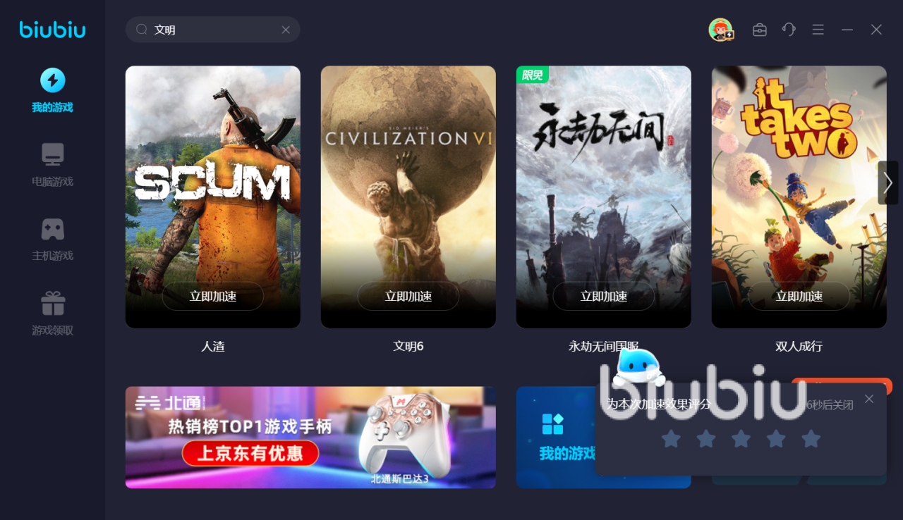 2024年03月04日 15:22 来源:撒旦风喇叭芽4文明6作为一款发布至今广受好评的历史策略回合制游戏,由2K game公司发布的玩家对抗在特定时间里建立属于自己的文明,但是文明6掉线问题怎么办困扰了大部分的玩家,那么我们该怎么解决文明6掉线问题呢?这里使用专业的加速器软件可以很好地解决文明6掉线问题,那么市面上那么多的加速器软件我们应该怎么选择呢?biubiu加速器是不可多得的优秀加速器。