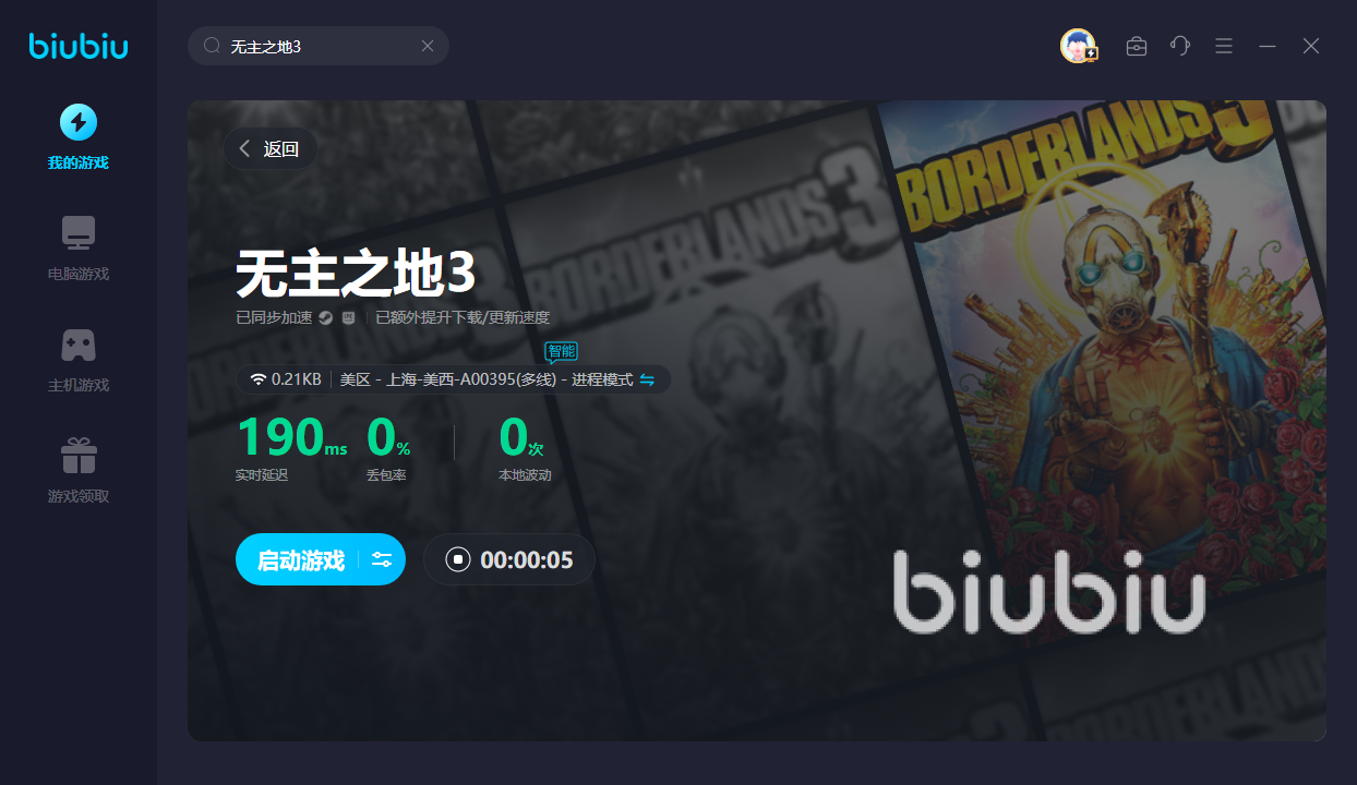 大家玩游戏的时候都担心游戏闪退,无主之地3闪退怎么解决?解决办法只有一个,那就是运行biubiu,在它的网络优化下,方可获得极好的加速效果,从而防止游戏突然闪退消失,令你更放心!