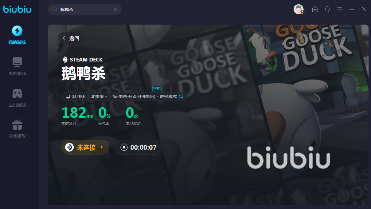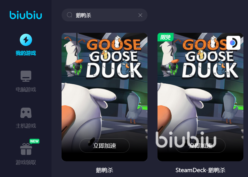 biubiu加速器拥有非常专业的游戏库,里面包含的游戏数量和类型更是丰富,像大家想要加速的鹅鸭杀火爆热门游戏的资源更是多,平台还为好多的游戏设置了专栏,你经常搜索的游戏也会在我的游戏库当中呈现,这样方便下一次的查找与加速,非常人性化的一个操作了。
