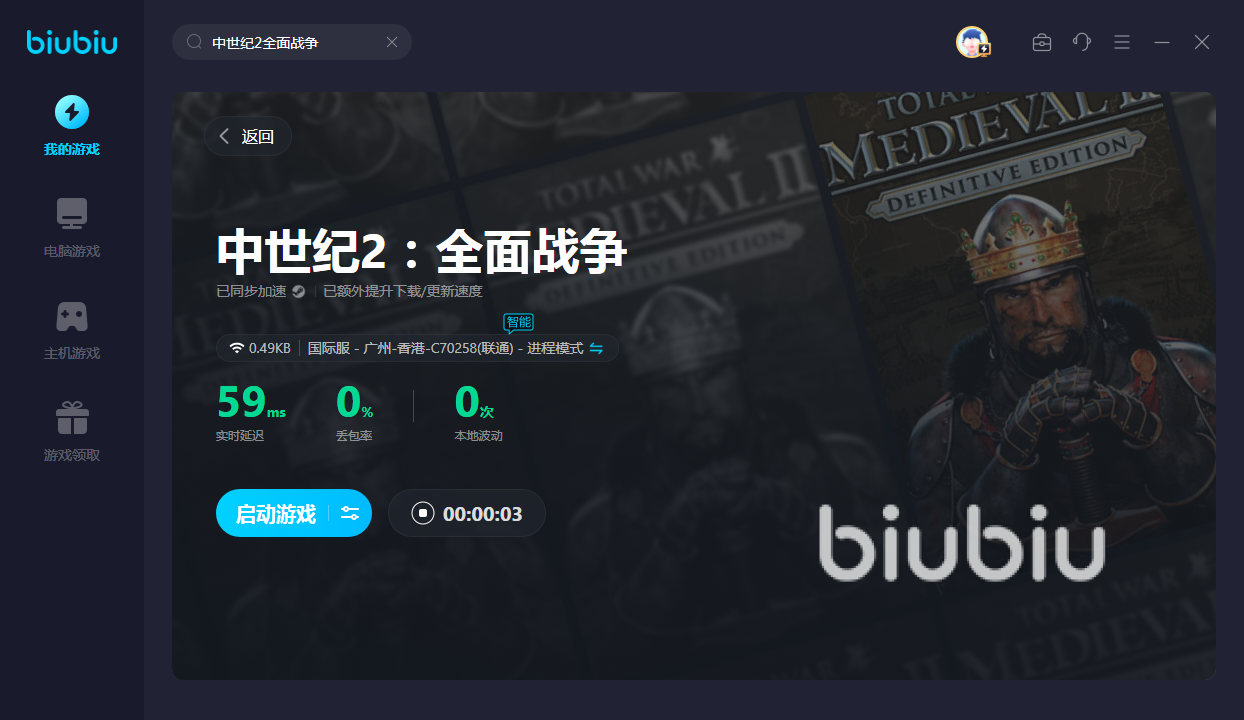 2024年03月04日 15:02 来源:巨力业库林对于这款回合制的战略玩法游戏,很多玩家对其还是非常喜欢的,在里面能够感受宏大的战场元素,同时其中的机制设定也比较的多,今天主要和各位说下中世纪2全面战争卡顿怎么办,在玩家体验的过程中,如果遇到了延迟很高,或者是经常发生掉线的情况,那么肯定是需要去打开biubiu的,作为阿里旗下专业的游戏加速工具,它能轻松为大家带来稳定的效果。