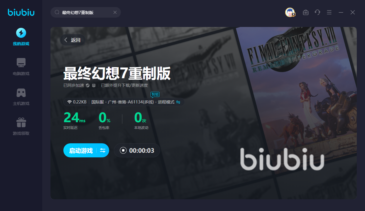 每次玩最终幻想7重制版的时候,大家最怕的就是卡死。最终幻想7重制版卡顿怎么办?为了防止游戏卡死,宝子们最好开启biubiu,就能开启极速游戏体验。然后不仅玩得更加happy,还能防止掉线,游戏体验更舒适。