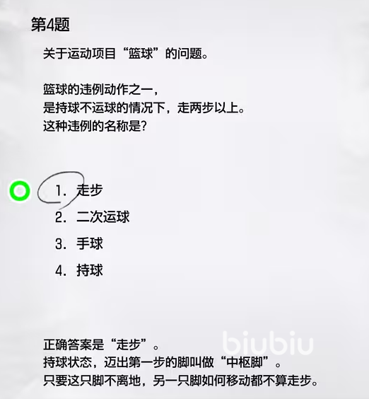 如果问到了起跑前选手两手撑住地面的姿势,那么正常答案应该是蹲踞式起跑。在一场足球比赛当中,牵手球童的作用并非是为了帮助捡球的。国际游联会为潜泳规定的上限距离的数值为15米。而飞镖比赛的一回合中,投出三支的总分应该是85分。在打篮球时如果持球不运球走两步,这属于违例动作之一,被称为走步。