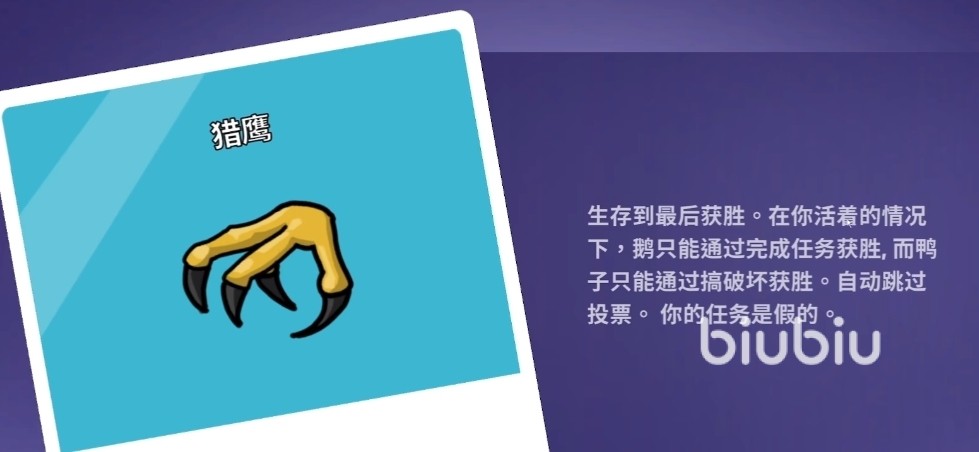 秃鹫的角色技能通过杀死其他鸟角色来提升,主要还是搅浑局面上的阵营判断。