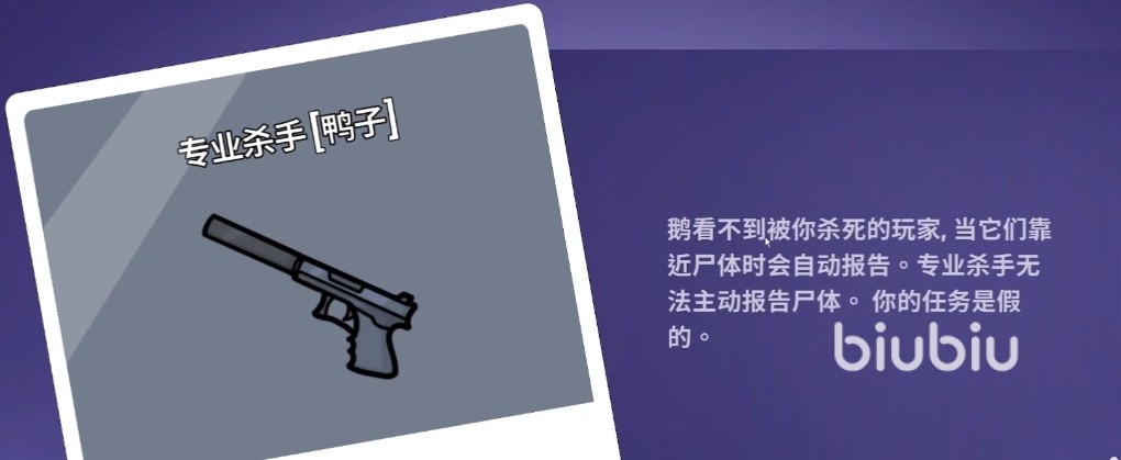 专业杀手角色技能通过猎杀其他鸟玩家来判断他的身份,如果是鹅阵营会自动报告。