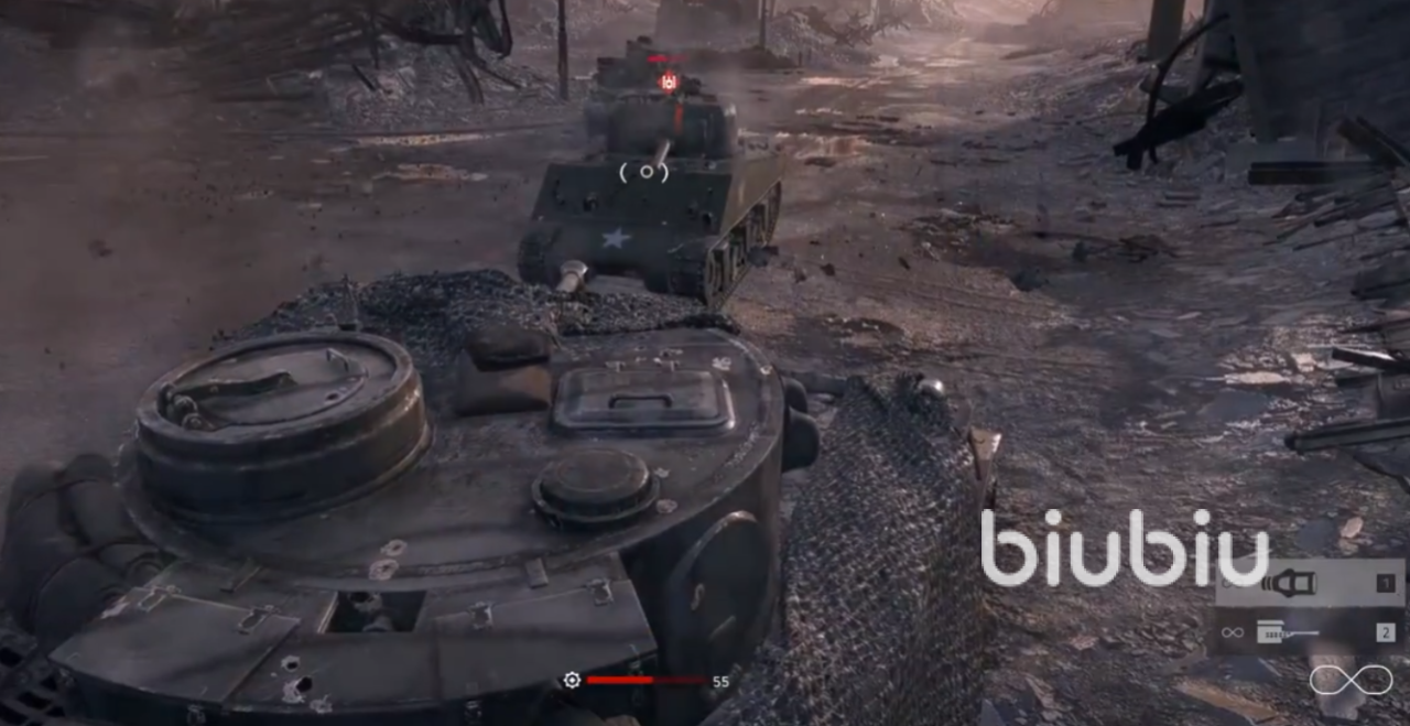 一开始就会有初始剧情,盟军的队伍已经来到边境,德国军官穆勒需要带领自己的队伍使用虎式坦克出征。之后玩家就可以操纵坦克进行战斗,主炮跟机枪是可以切换攻击的,前者主要打对方的坦克,后者则是应对步兵。当然玩家的也会受到伤害,这时候就需要赶紧躲到掩体后面,保存战斗的实力。