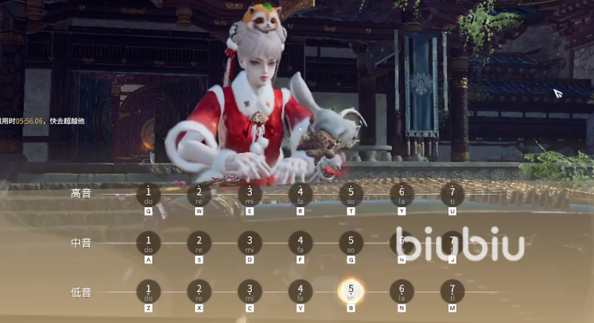 在大厅里面玩家靠近古筝之后使用E键就能够演奏乐曲了,但是如果之前曲库里面没有谱子肯定是不好完成了,完全靠自己按键演奏那是要记很多键位的,最简单的方式当然就是在我的乐谱当中导入曲谱。
