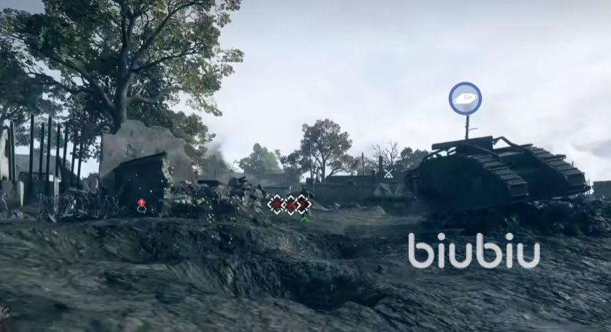 3、回头走到有装甲车的地方,走右边小路找到有敌人的战壕,打败他们之后寻找。
