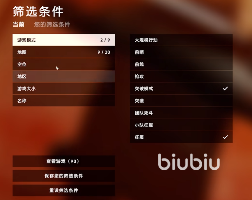 首先一点就是社群游戏,很多新手玩家在进入游戏时,直接就点击那个大大的建议游玩,但是很可能游戏体验感非常糟糕。其实在点击游玩之前,我们应该先在多人模式界面点击高级搜索,然后点击完整筛选条件,选择空位并勾选前四个,地区选择亚洲模式的征服或突破之后退出服务器列表,在下方点击全部让它变更成社群游戏,这个时候我们就会看到很多的服务器,建议小伙伴们优先选择“BFV RBOT”前缀的服务器,对于新手来说会极大提升游戏参与感。