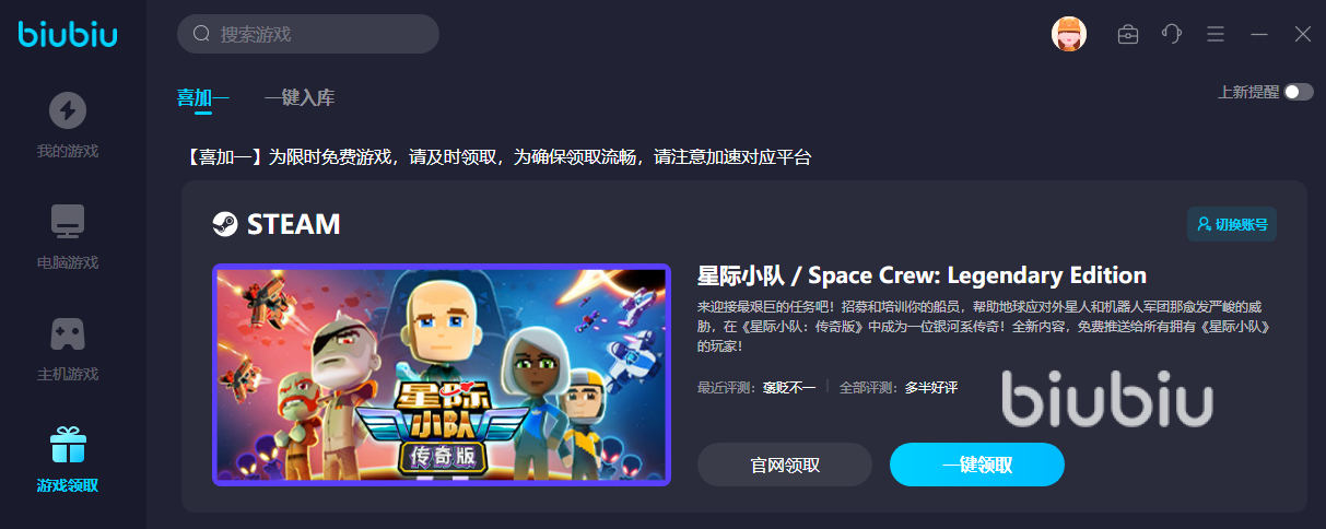 因为飞机维修技师模拟器毕竟还不是免费的游戏,但熟悉Steam的人都知道“喜加一”或者是很多免费游戏的领取,你要是想玩除飞机维修技师模拟器之外的一些免费Steam游戏,也可以在biubiu里关注一下开启的福利专栏,这里面就能帮你更简单地领取到限时福利游戏。