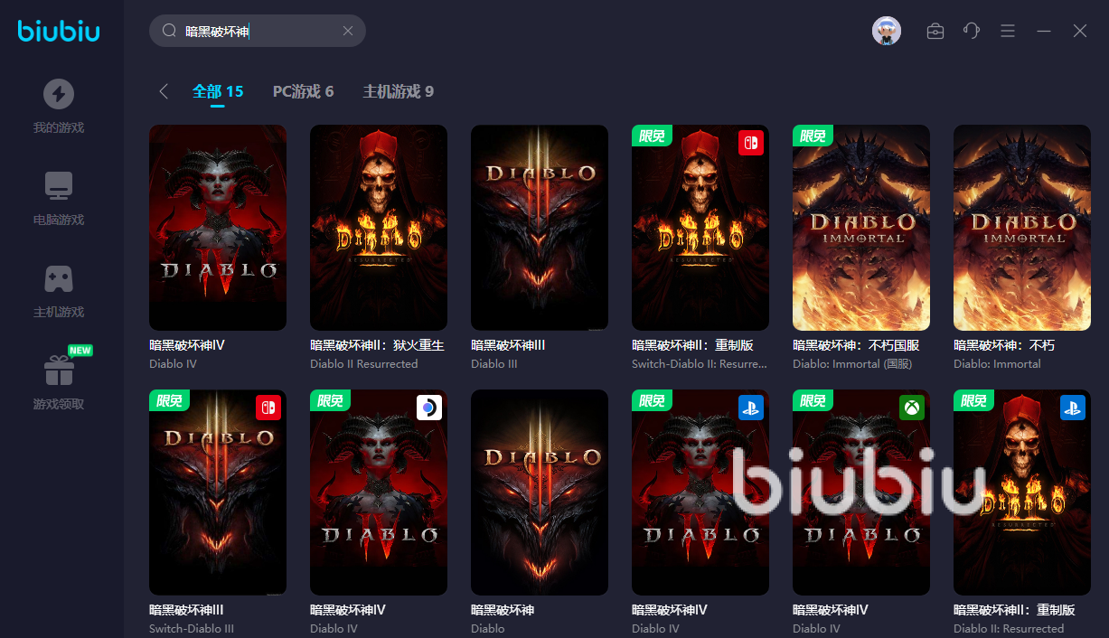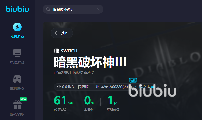 在充足的时长支撑下,各位现在就能用biubiu了,但是biubiu是可以连接到各大海内外热门网游,暗黑系列的多代,多个版本都是提供加速服务的,最好是使用全称精确查找,输入系列名称,就要花一点时间寻找一下才能开启加速服务。