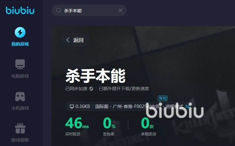 人物的第一条血条见底的时候,会出现暂停时间让大家修整,这个实机要抓住调整身位,大家肯定不想因为闪退浪费这个时间吧,所以才会用到加速器,杀手本能闪退用什么加速器告诉大家了,在biubiu生效后,有了低延时的网络,解决了闪退,这个时间就能把握住,说不定还能通过调整扭转局势。