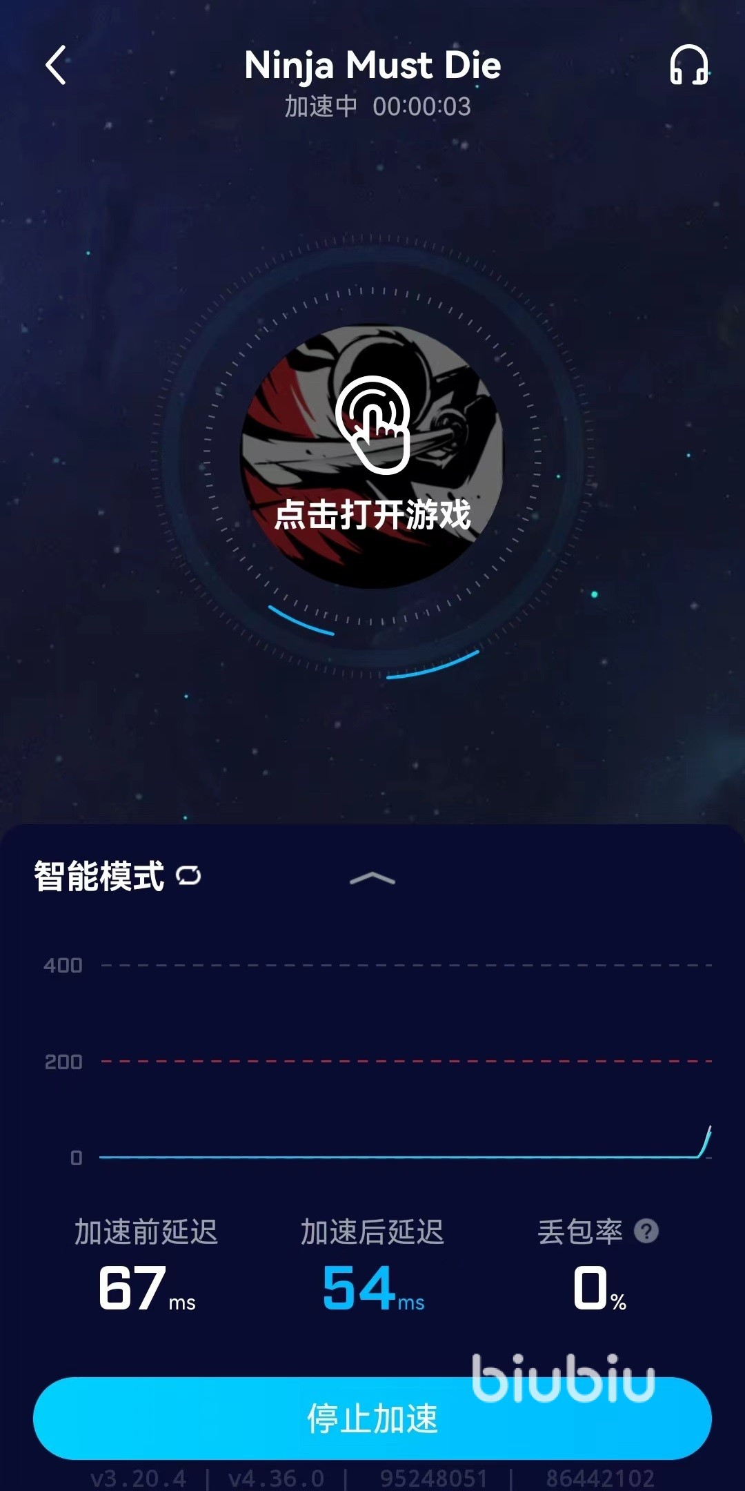 使用biubiu进行国际服的登录非常简单,不需要再进行其他各种操作和设定,只要在游戏中输入游戏名称并找到相关选项,直接点击就能开启优化。这款游戏的英文名字为ninja must die,大家输入这个就可以了。这样也就实现了一键优化和跨服等多种操作,在切换到的加速页面中,点击图标就能开启游戏。同时还能够进行加速模式的切换,例如智能模式和常规模式等,根据自己需求去选择。游戏在运行过程中,软件会始终根据网络情况进行节点切换与重新连接,这样可以保证数据顺利进行传输。另外还具有全球专线技术,在国际服也不用担心连接困难等问题。