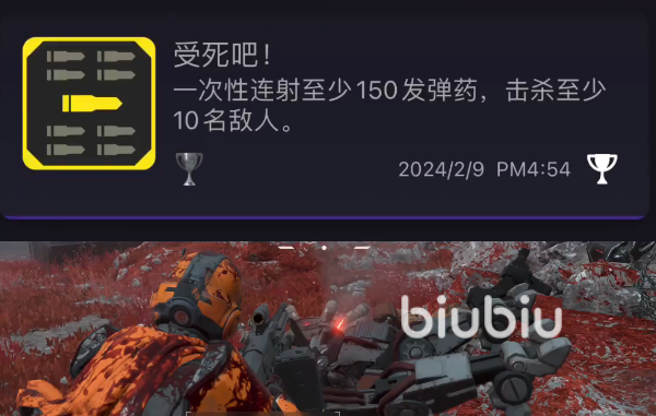 【完成受死吧】这个成就需要我们一次性连射至少150发弹药,这里小编推荐大家使用机枪这把武器,在我们扣住扳机之后不要松手,直到子弹打光之前击杀十个敌人便可获取成就。