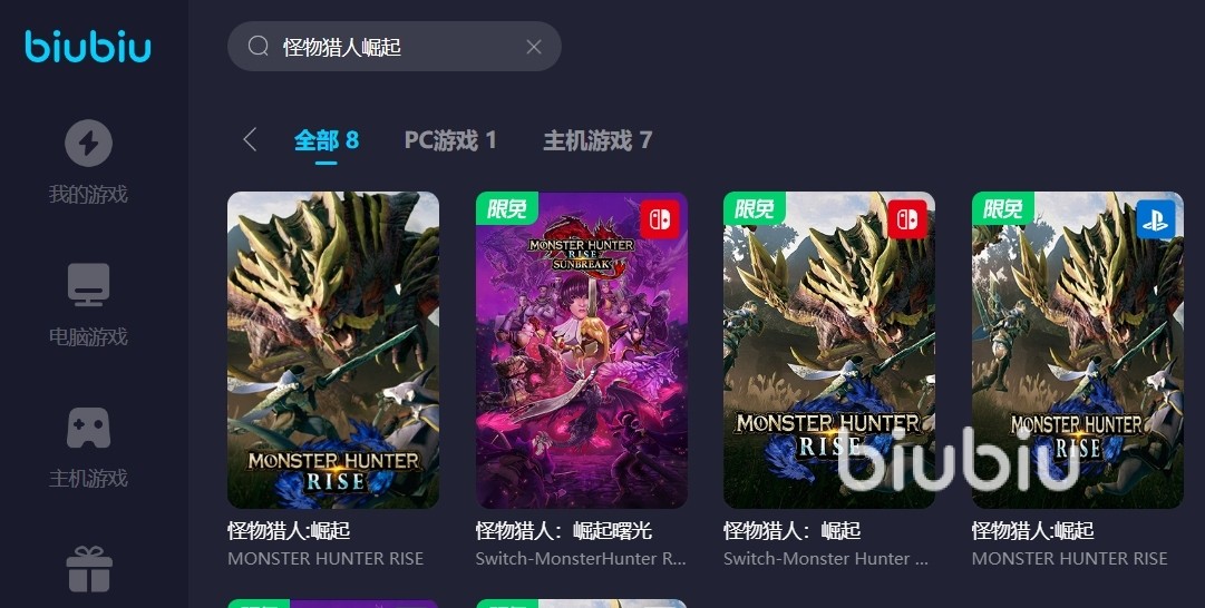 biubiu加速器适用多个平台的游戏,大家不管是switch上玩怪物猎人还是电脑上玩怪物猎人都可以用它加速,而且账号互通的只需要注册充值一个号即可。加速过程也很简单,只要找到目前游戏启动即可,随点随用启动也只要几秒钟,建议小伙伴们先启动加速器再打开游戏,在加载过程中也会更快哦。