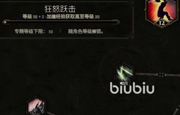 当我们开始给强化树分配点数的时候,可以从左上角看到目前的技能等级,它最高等级是二十级。通常如果装备上有附加对应技能等级的词条,那么系统则会分配给我们对应的技能天赋点来强化天赋树,而不是通过增加伤害的方式。