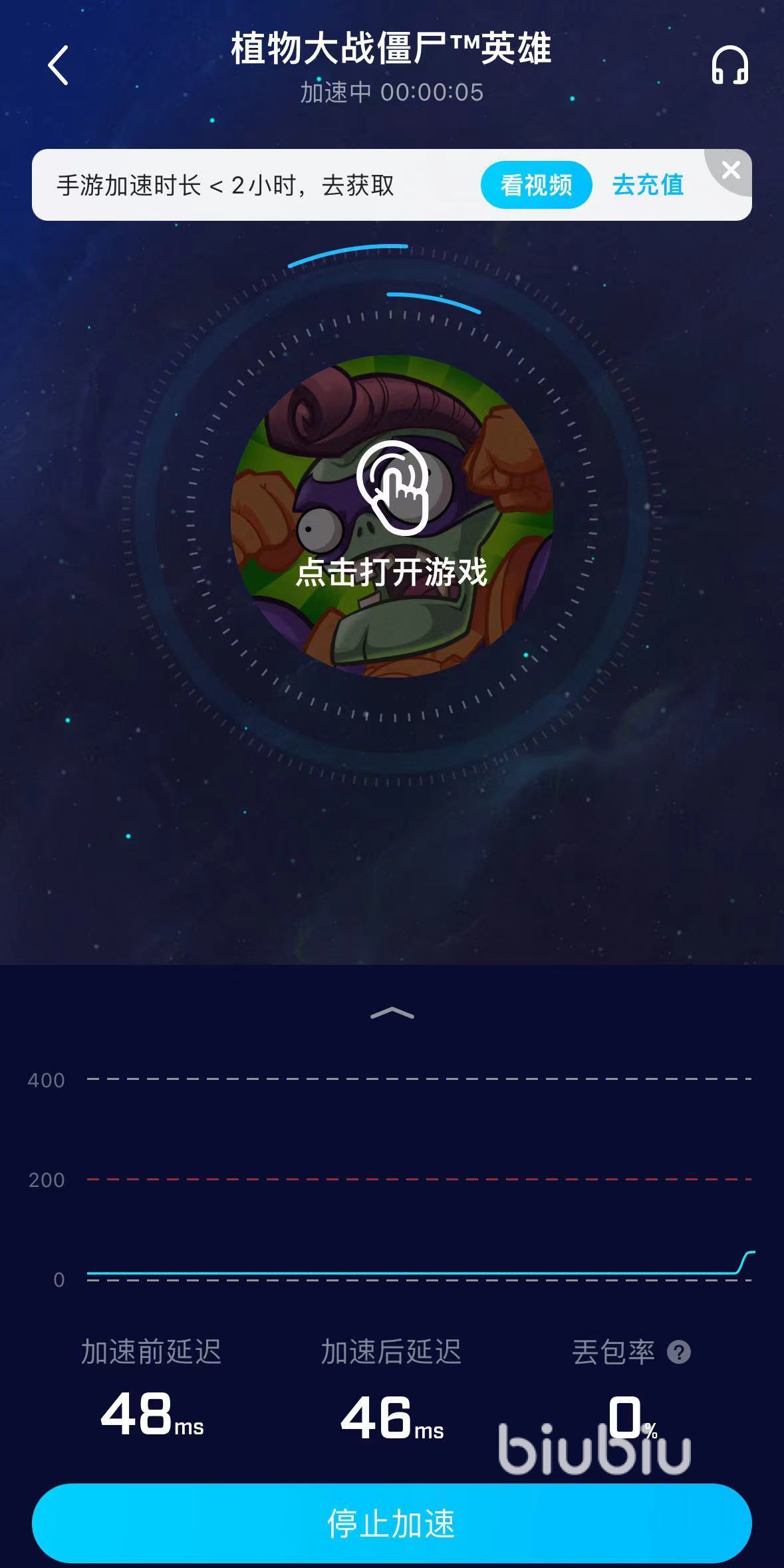 以上就是植物大战僵尸英雄闪退怎么办的内容分享了,游戏中的角色都是玩家都是熟悉的角色甚至在技能设计上也参考了原型,玩家的上手度也会非常快,再有了BIUBIU加速的支持,玩家在游戏中的体验感将会大幅度的上升更何况加速器上还有很简单的方式就能获得免费加速的方式。