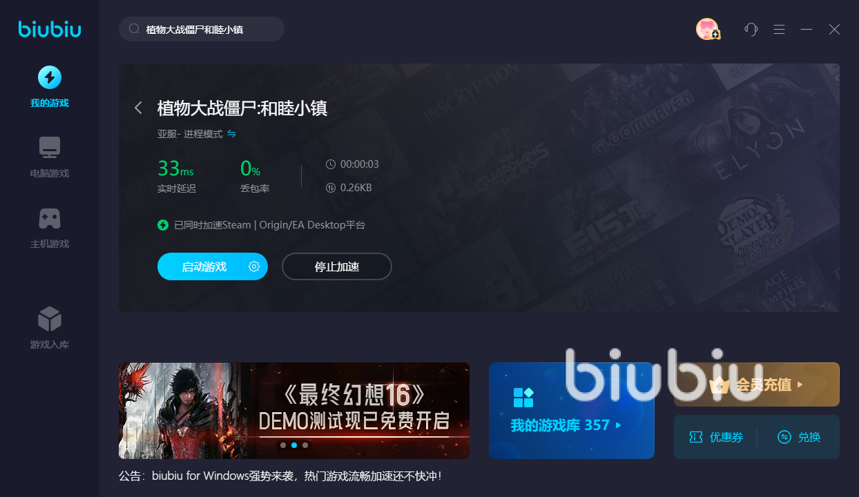 在植物大战僵尸的前期,大家可能会感觉游戏运行比较流畅。然而,随着游戏进展,面对越来越多的僵尸时,屏幕可能会出现卡顿的情况。这可能是因为游戏数据过多,导致电脑无法负担。但是,使用Biubiu加速器可以帮助大家更快速地传输游戏数据,减轻电脑的负担。这样,就不用担心在后期关卡出现掉帧甚至闪退的问题了,从而让大家能够更多地享受游戏带来的乐趣。