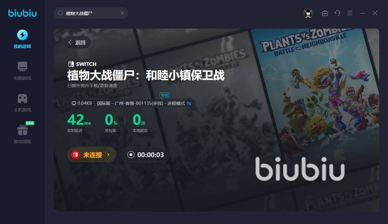 在游戏中,大家能体验到传统的塔防元素,同时也能直接控制植物角色去和僵尸进行正面的对决,包括使用组合技能与招式等来击败它们,而在这一过程中,如果自身的网络出现了卡顿,或者是游戏的延迟十分高肯定是不行的,所以大家应该去打开biubiu来运行,这么做的目的就是为了能进一步的稳定用户网络,况且现在去使用,新用户还能得到24h的会员加速福利。