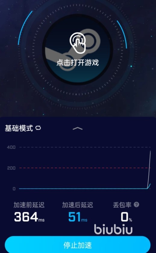 可以看到加速前后的延迟数据两者有着明显的差距,丢包率也一直维持在0%,可以顺畅地为大家使用移动端steam加速,记得不用的时候要选择停止加速哦,避免与其他软件发生冲突。