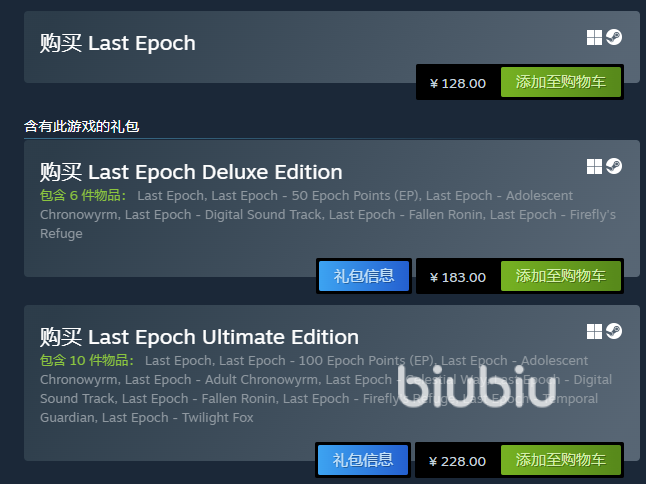 根据官方消息我们可以得知,目前游戏仅上线了Steam平台,在售的一共有三个不一样的版本,128元的标准版是只包含游戏本体的,183元的豪华版是会在前面的基础上多出了非战斗的宠物、时装以及传送门的特效等内容,而228的究极版是在豪华版的内容上再次增加了新的成年宠物和时装等内容,大家可以根据自己的预算选择合适的版本购买。