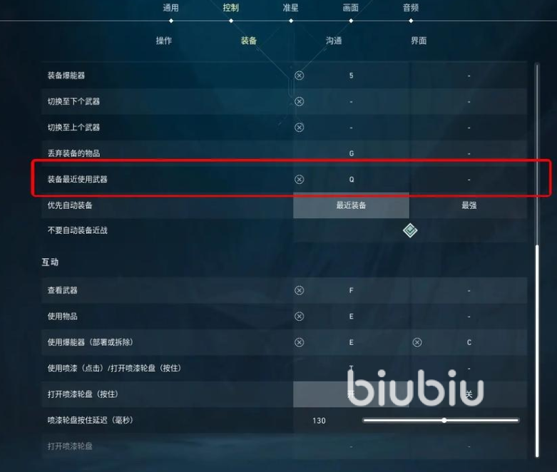 大家在拥有龙刀之后首先打开装备设置,把装备最近武器与装备近战武器的按键设置为同一个之后,大家就可以根据自己的习惯来进行设置,不和其他按键冲突即可。