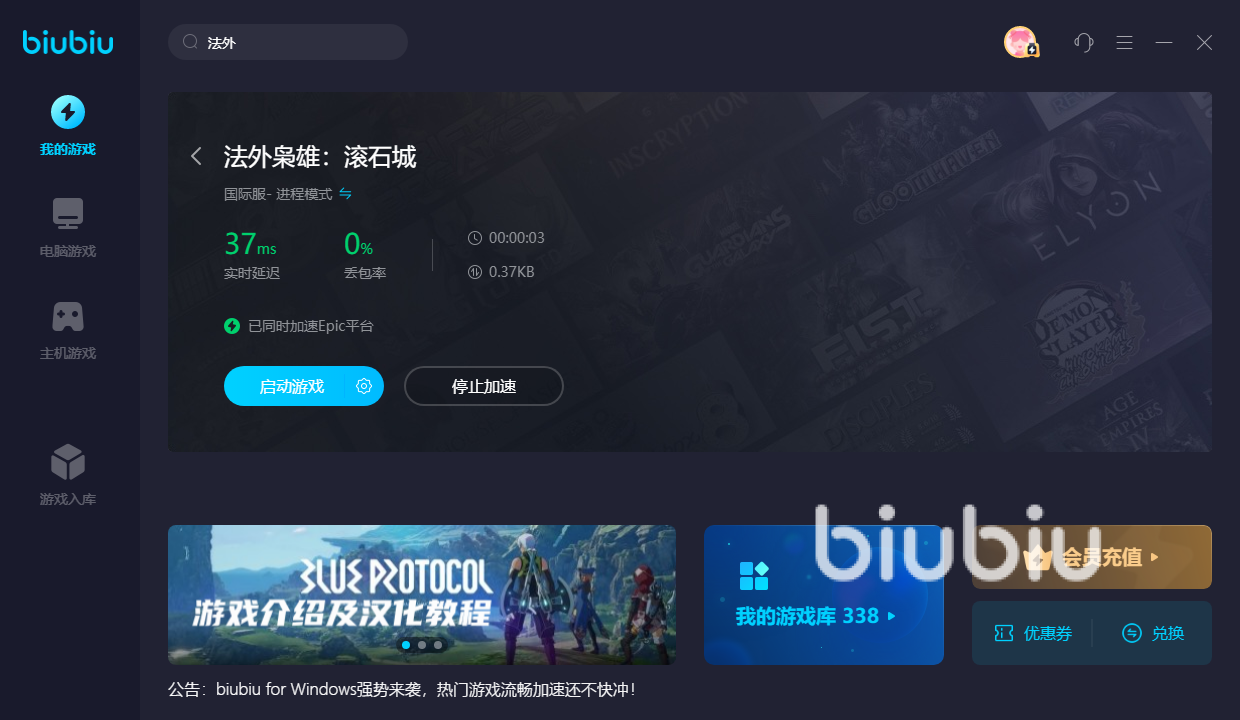biubiu的这款加速器所包含的功能十分的出色和全面,开放的社区里边大家可以直接搜索游戏去学习更多的通关攻略,而且在启动加速方面也没有任何得门槛,游戏名称编辑好直接搜索启动就可以了,当下没有该游戏的宝子也可以从biubiu的这款加速器中下载游戏,操作及其的简单方便。