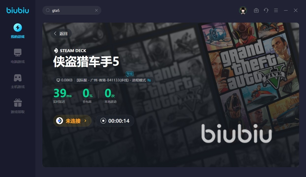 2024年03月13日 13:37 来源:光辉众呆河马很多玩家对于gta系列的作品还是非常喜欢的,它除了玩法上很经典外,其中也为大家带来了很多刺激的元素,包括去探索各个城市以及收集武器等,下面小编主要和大家说说gta5一进去就闪退怎么办,这也是许多朋友目前正在经历的问题,如果说游戏发生了掉帧或者是直接出现卡死的话,可考虑去使用biubiu来帮助自己,作为专线加速工具,其能力方面还是很突出的。