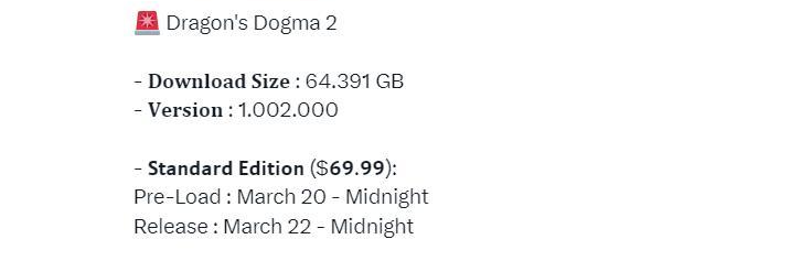 龙之信条2容量多大 DragonsDogma2容量大小介绍