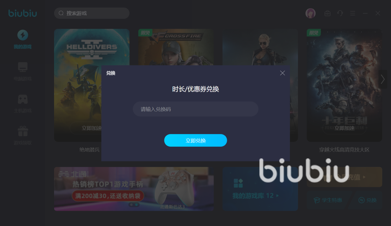 而且软件的安装与下载也非常方便,你可以直接点击上文当中的按钮来操作,如果之前从来没有使用注册的,现在行动起来能领取24小时免费时长,这只是针对第一次使用的新用户哦!还有就是平台当中新老用户都能参加的兑换码活动,需要输入兑换码【biubiu不卡顿】,兑换成功能领三天免费时长。平时也会不定时的推出各种活动来回馈新老用户,让大家在这个平台的支持下更好的体验那些热门火爆的游戏。