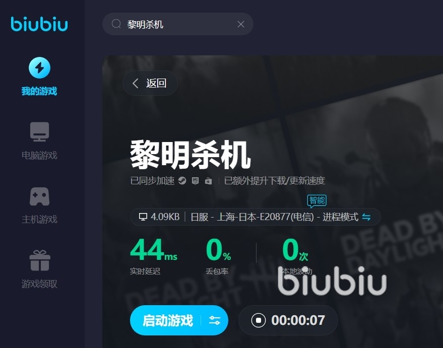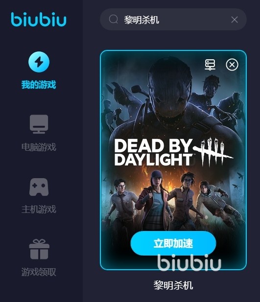 以上就是黎明杀机闪退怎么办的方案分享了。就算是玩家能够正常登录游戏了,但是游戏过程中还是很紧张刺激的,一旦玩家的网络环境变化很大那就可能就会导致游戏卡顿甚至闪退,所以玩家在玩这类游戏的时候一定要启动加速器,BIUBIU就是个不错的加速器选择。
